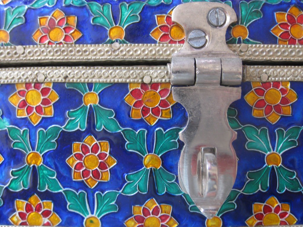 ...j'adore ce coffret à bijoux...acheté à Trivandrum, capitale du Kerala...et vous rappelez-vous de mon sari? Et bien je l'avais acheté à Jaipur...en même temps que les foulards colorés...dans une fabrique dont voici l'adresse, au cas où vous y passiez un de ces jours@)