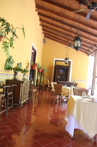 Un délicieux dîner en terrasse (ici les ingrédients utilisés sont le plus locaux possibles. Ainsi, je me suis régalée d'un plat de poisson servi accompagné d'un coulis de tamarindo cueilli dans le jardin botanique et d'oignon confit, yummy!) suivi d'une nuit bercée d'effluves propices à l'évasion plus tard et me voici attablée devant un bien mérité parfait petit déjeuner (miam les pan dulce servis accompagnés de confitures de mangue et de papaye!) servi dans le patio, bercée de la musique mexicaine provenant du village attenant à la Hacienda : dépaysant!