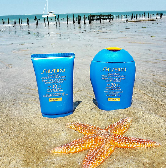 La gamme WetForce de Shiseido (visage / corps SPF30) : reçue il y a quelques semaines, c'est la première gamme que j'ai testée et terminée sur la plage. La jolie forme des flacons est pratique à transporter, pas d'excuse pour ne pas les dégainer en toutes occasions! Seul bémol me concernant quant à WetForce : sa texture blanche un peu épaisse! Je recommande d'en mettre peu et de prendre le temps de bien l'appliquer. Super efficace quoiqu'il en soit, même en SPF30!