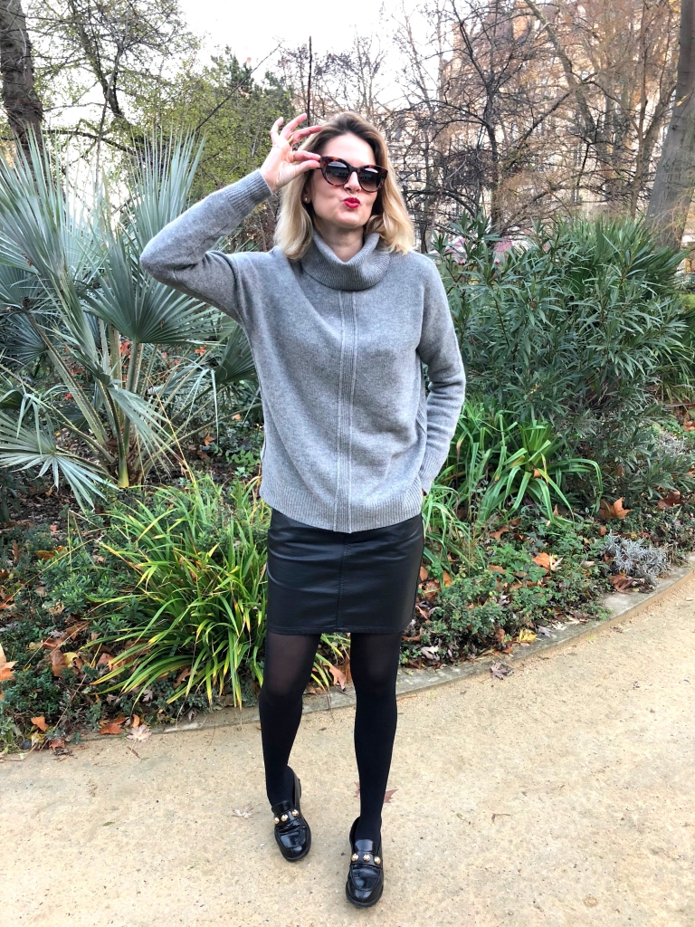 Pull Max & Moi (collection actuelle reçu via Octoly) | Manteau vintage Burberry's | Jupe Garcia Jeans (collection actuelle) | Cabas Neverfull et étole Louis Vuitton | Lunettes Jimmy Fairly | mocassins Vanessa Bruno (old) | Photos exceptionnellement prises à l'Iphone 8 par ma soeur.