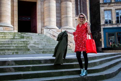 Je n'ai rien trouvé de mieux pour illuminer mes journées que d'arborer des touches gaies et colorées au quotidien. En ce moment je me régale du coquelicot, cette note vive matche parfaitement avec le kaki et l'argenté et ça tombe bien : j'adore toujours autant les pièces fortes de ma garde-robe du moment que sont ces sublimes boots et ma parka militaire. Les photos ont été prises il y a un peu plus de deux semaines, oubliés les collants depuis, gniiiiiiii!
