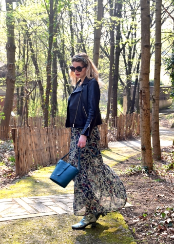 Robe Grace et Mila (new co) | Bottines et sac Karine Arabian | Perfecto Comptoir des Cotonniers (old) | Blond par Elodie pour Zazen Paris | Rouge à Lèvres 'Joli Rouge Velvet 742' Clarins | Lunettes Jimmy Fairly.