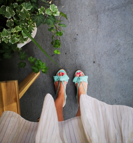 Robe et sandales Antik Batik (old), sac Atelier Occitana (collection en cours), lunettes Jimmy Fairly.