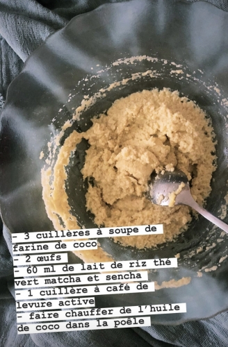 Voici la recette* de mes divins fluffy pancakes hyper digestes (miam la farine de coco), healthy (sauf quand on les fait baigner dans du maple sirup comme j’adore le faire ah ah) et proteinés :