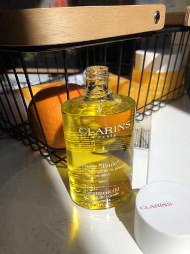 - Après le gommage place au massage sur la peau encore humide avec l’iconique Huile Tonic, un must pour tonifier et améliorer l’élasticité et la fermeté! L’astuce Clarins pour optimiser son efficacité ? Terminer par un jet d’eau fraîche sur le corps.