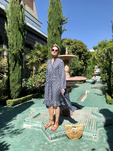 Robe Efyse, nu-pieds K-Jacques, lunettes Jimmy Fairly.