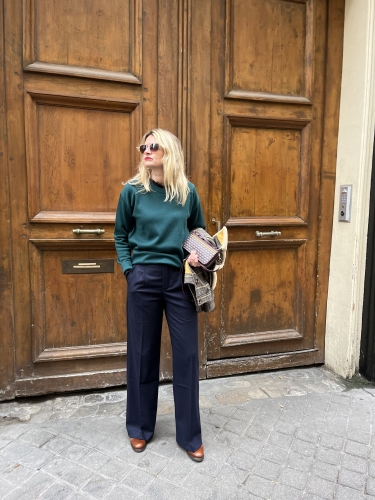 Manteau Stella Forest, pull Asphalte, pantalon Le Pantalon, bottines One Step, sac Fauré Le Page