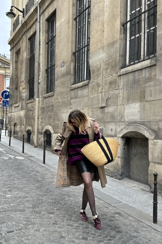 Trench Burberry vintage , panier Muun , baskets Adidas Samba